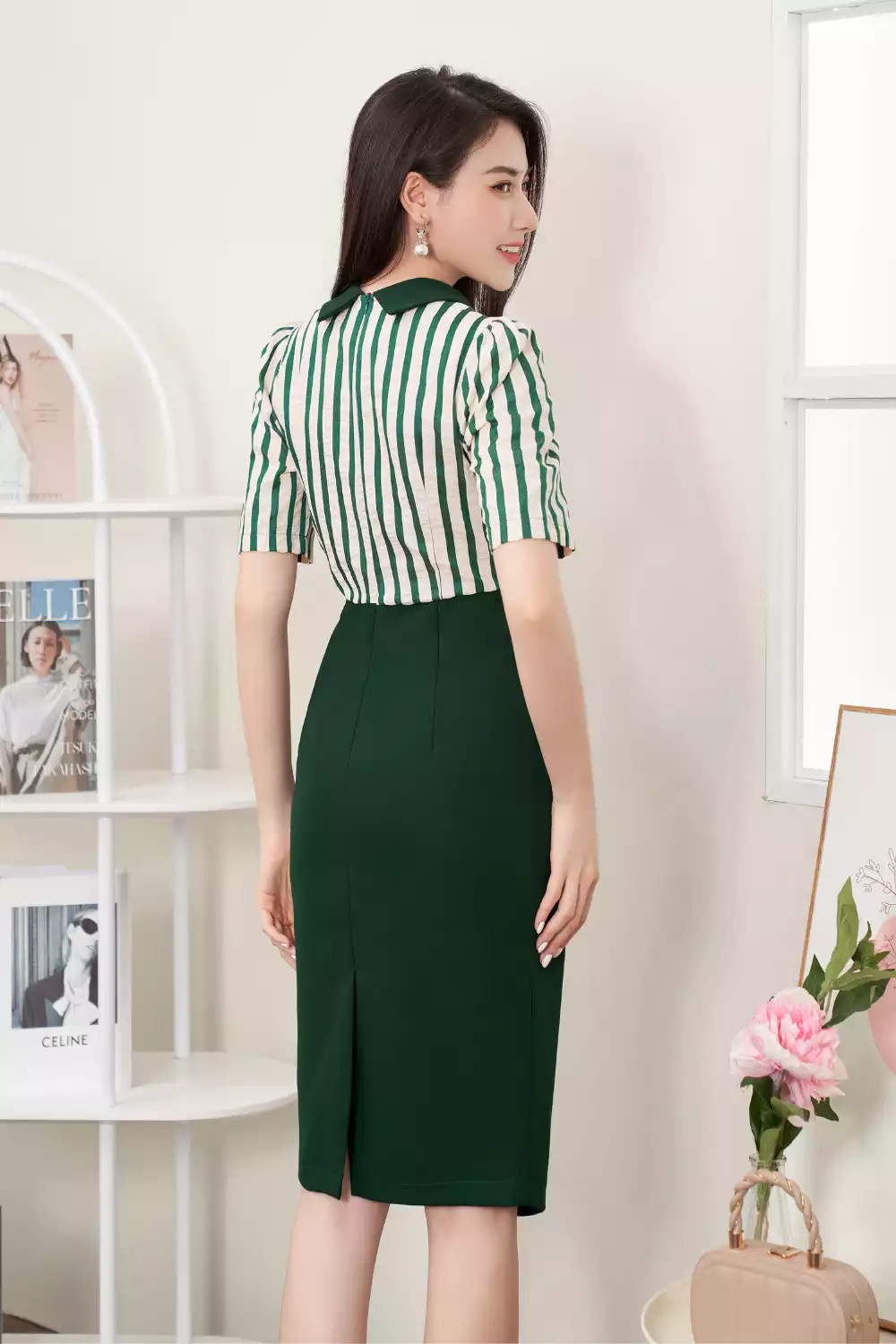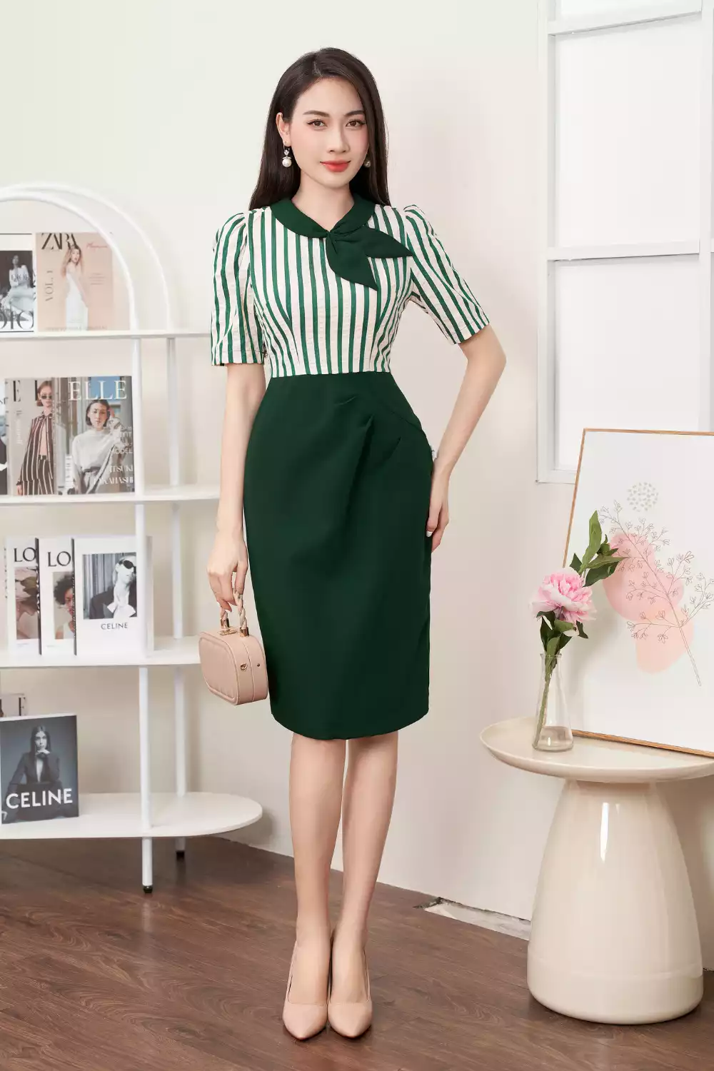 đầm kẻ xanh phối chân ôm xanh xếp 1 màu