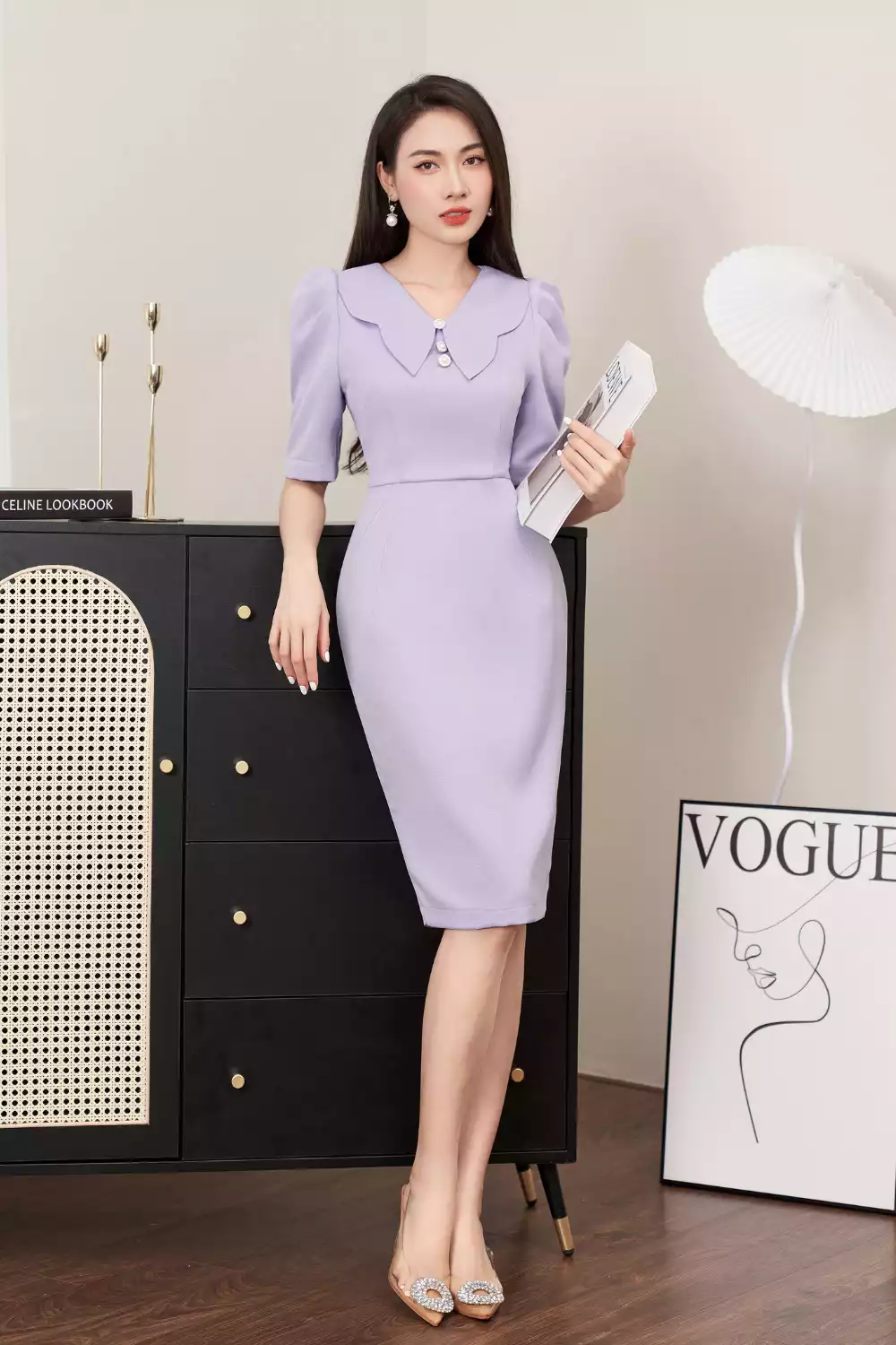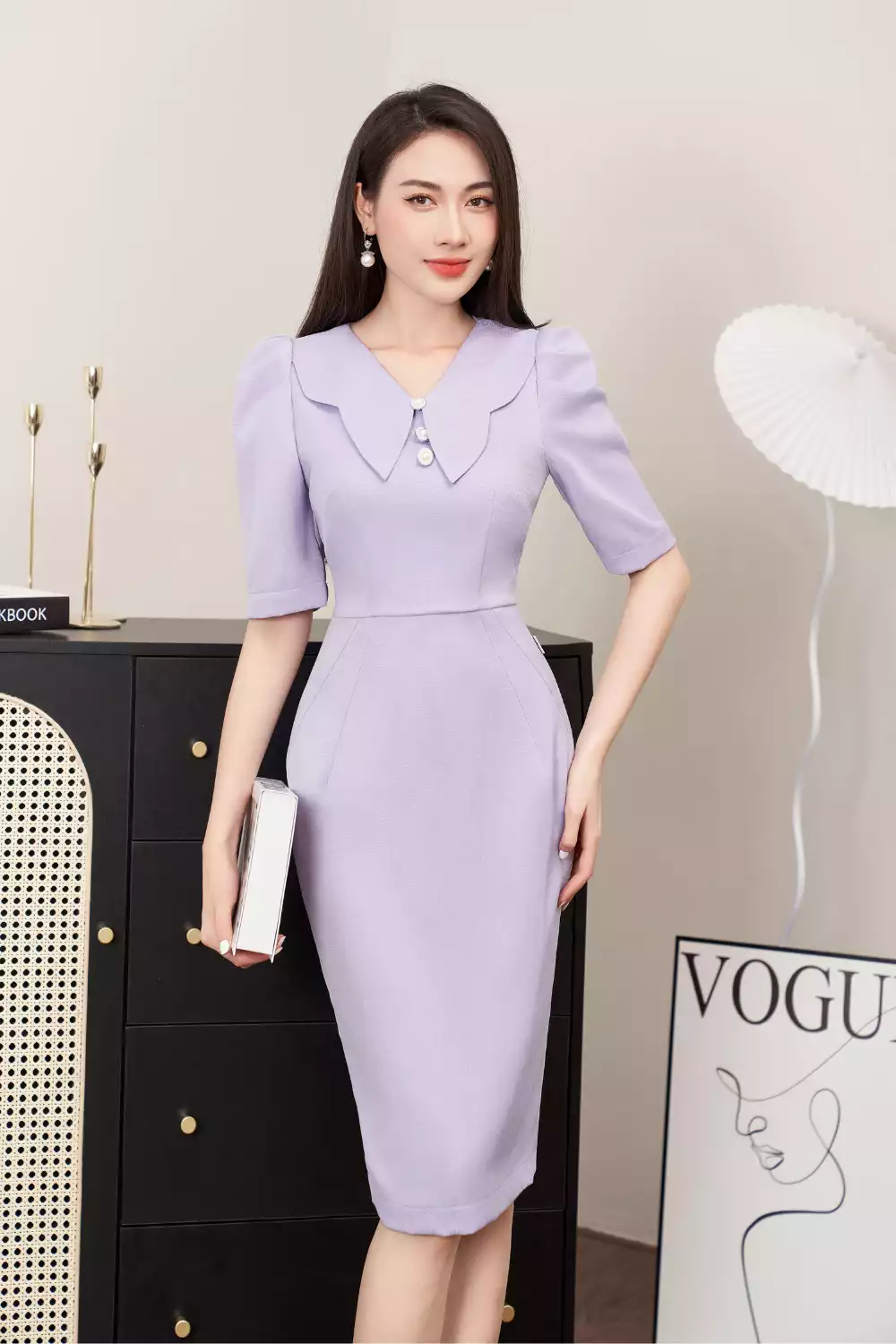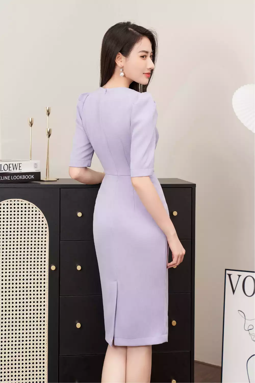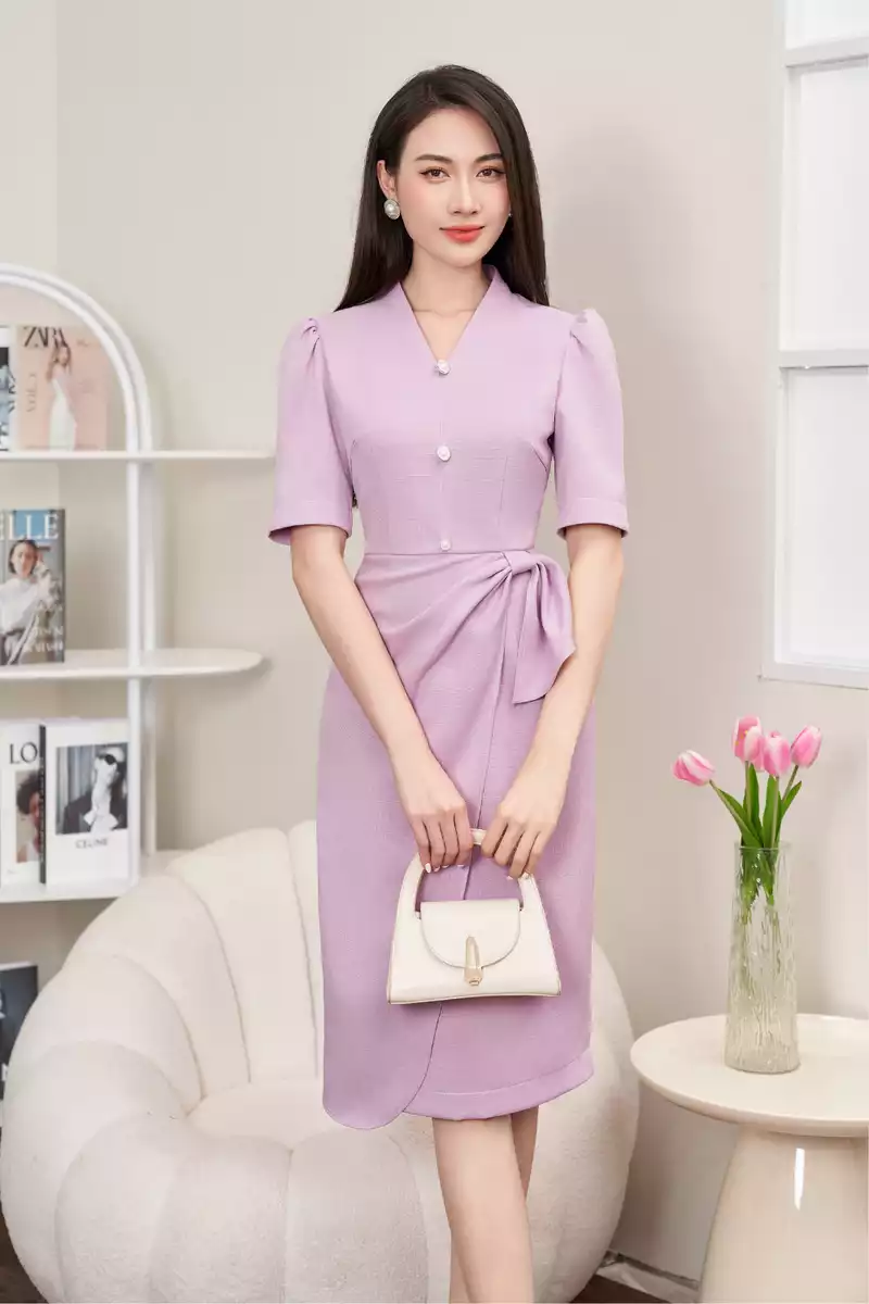 Đầm ôm dạ tím cổ cách điệu
