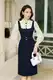 Đầm ôm den giả vét ngoài kẻ