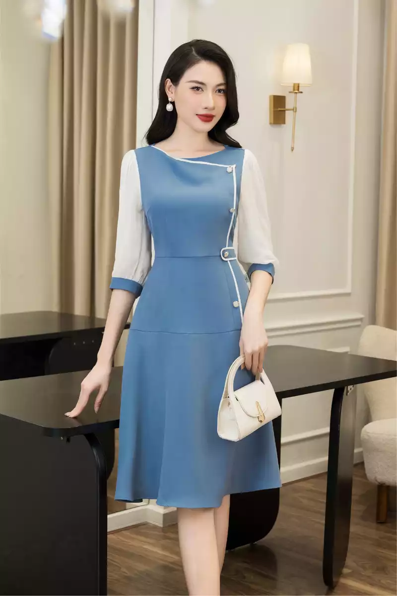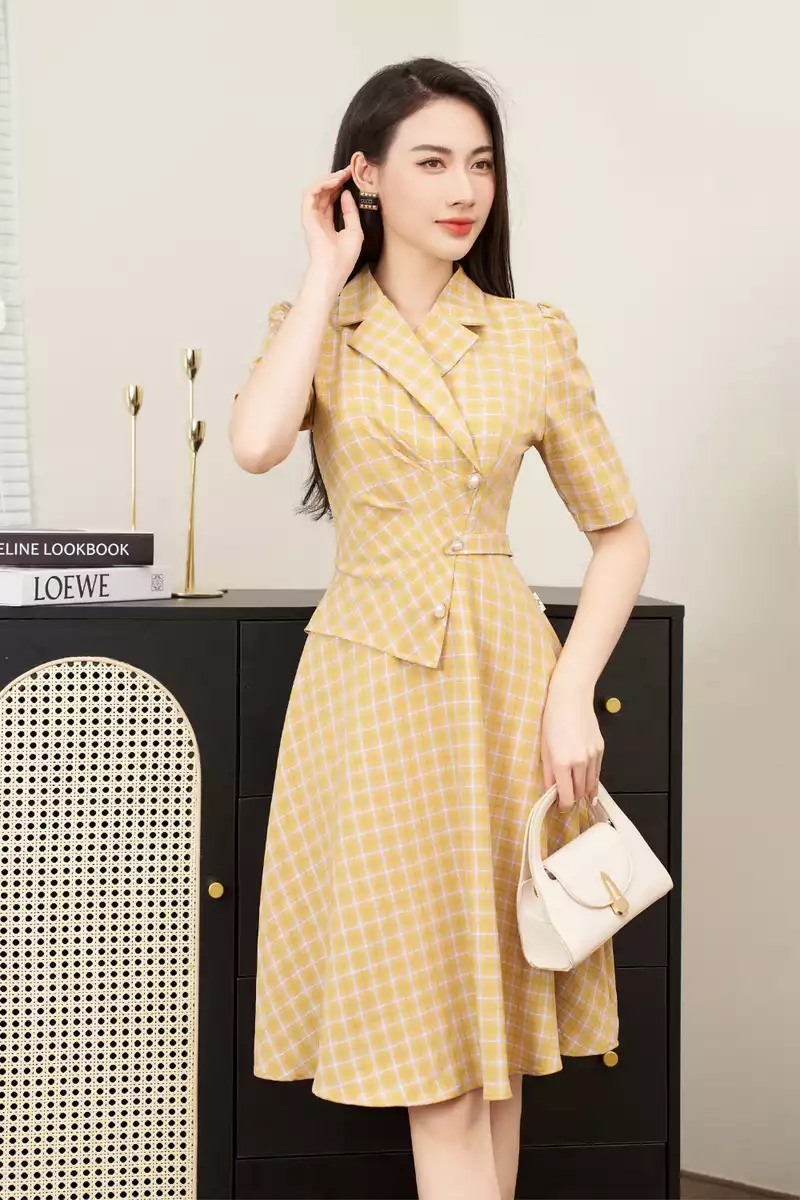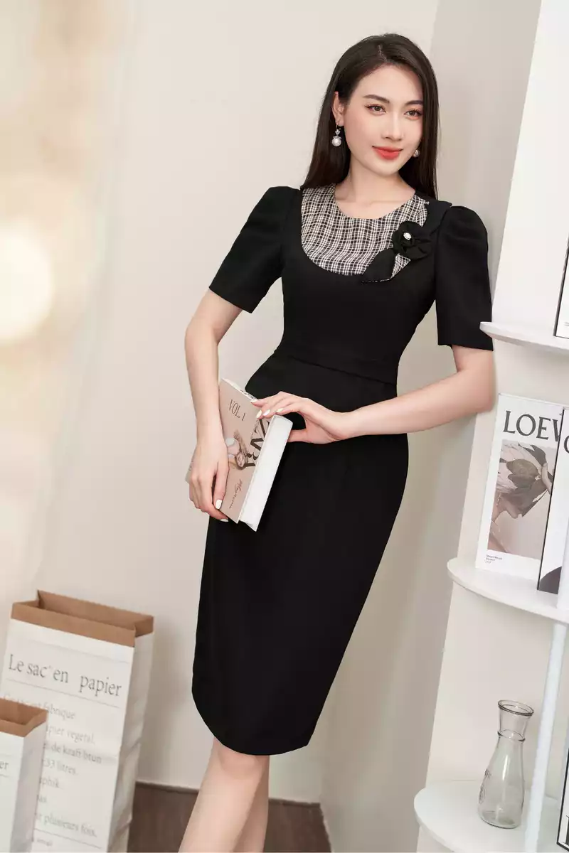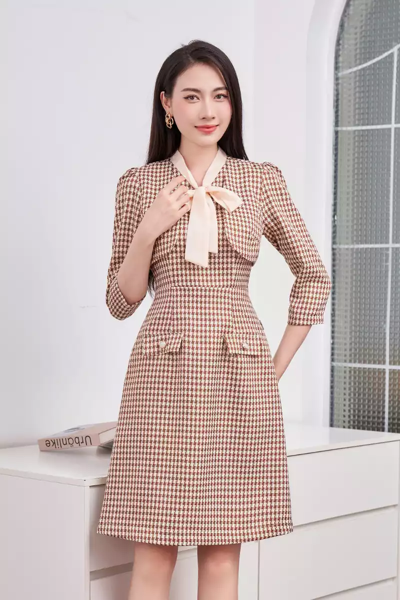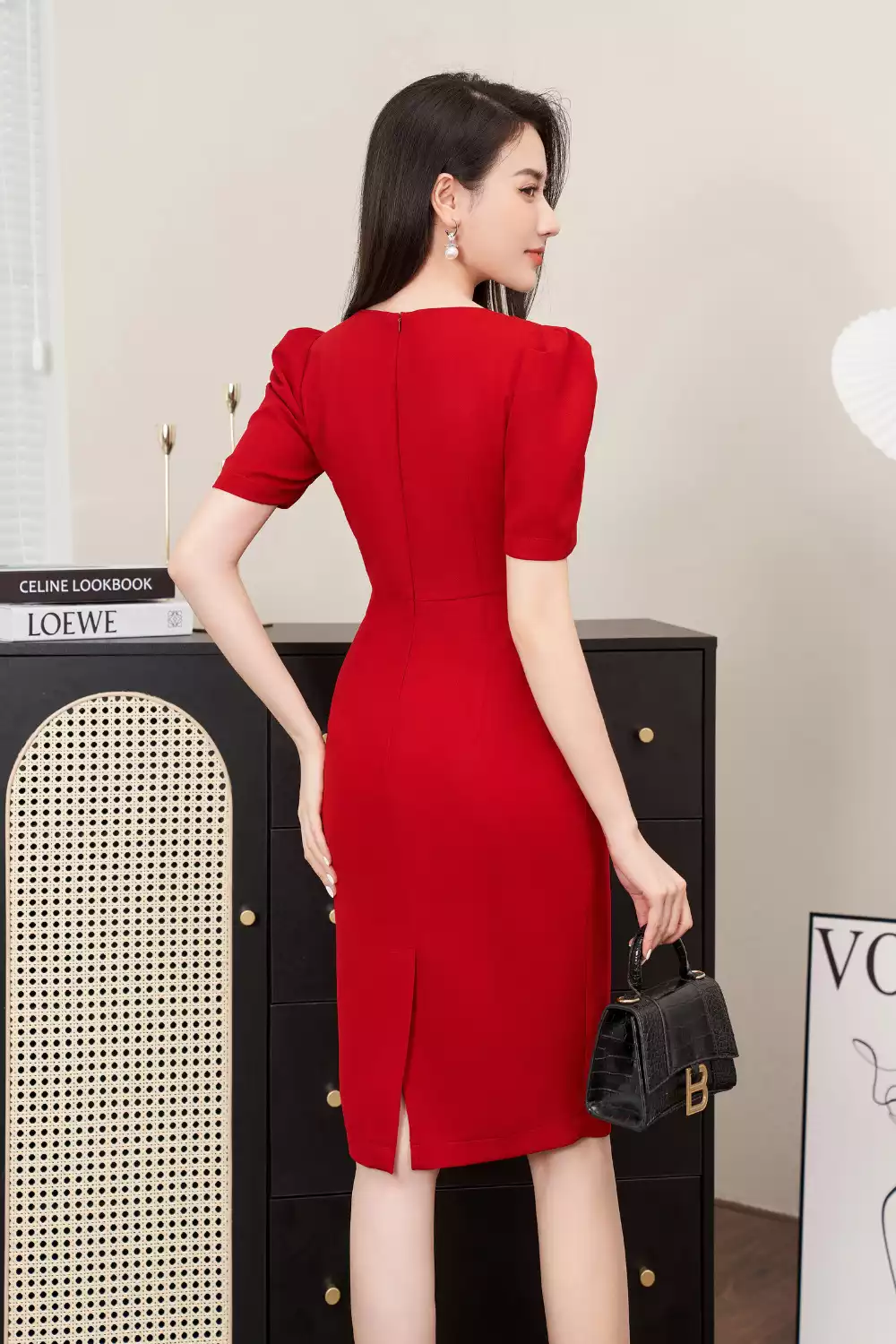Đầm ôm đỏ 1 màu phói kẻ đỏ